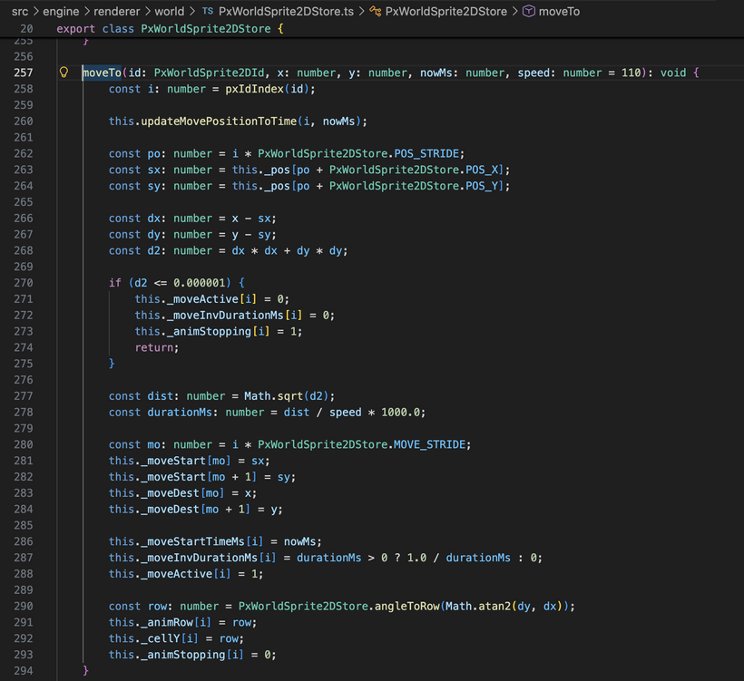 The new system is based on absolute time using performance.now(). Instead of advancing movements step by step each frame, we calculate where an actor should be based on when the movement started, how fast it is moving, and the current time. That means movement is tied to real time instead of frame updates. Even if the browser pauses the game in the background, everything stays consistent, and when you come back actors are exactly where they should be.