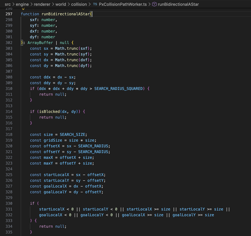 Pathfinding now fits into that system instead of driving it. It operates within a bounded area, reuses memory between searches, and focuses only on solving the path when it is actually needed. Because it relies on the same collision queries as everything else, the result matches what direct movement would do, instead of feeling like a separate system with slightly different rules.