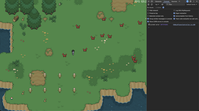 While debugging this, I ran into a confusing issue where clicks near the edges of sprites would sometimes miss even though everything looked correct visually. It turned out not to be a math problem at all, but a cursor hotspot issue. The browser cursor does not always report its position at the visible tip, which means the actual click location can be offset by a few pixels. Once that was accounted for, the picking system behaved exactly as expected.