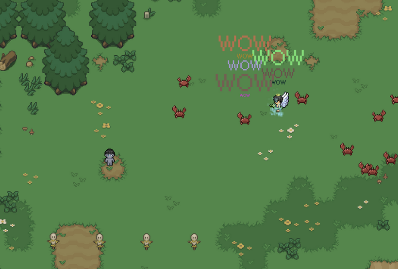 Now that bounding box picking is in place, we can hook it up to the overhead text stack and see it in action. If you log in to your 5th slot character on https://fantasyonline2.com/ and click on any enemy or other player, you’ll see both systems working together inside PxEngine for the first time. Each click pushes a new “WOW” onto the text stack with a random size and color. This is where all the work from the past couple of months really starts to come together and show what the engine can do.