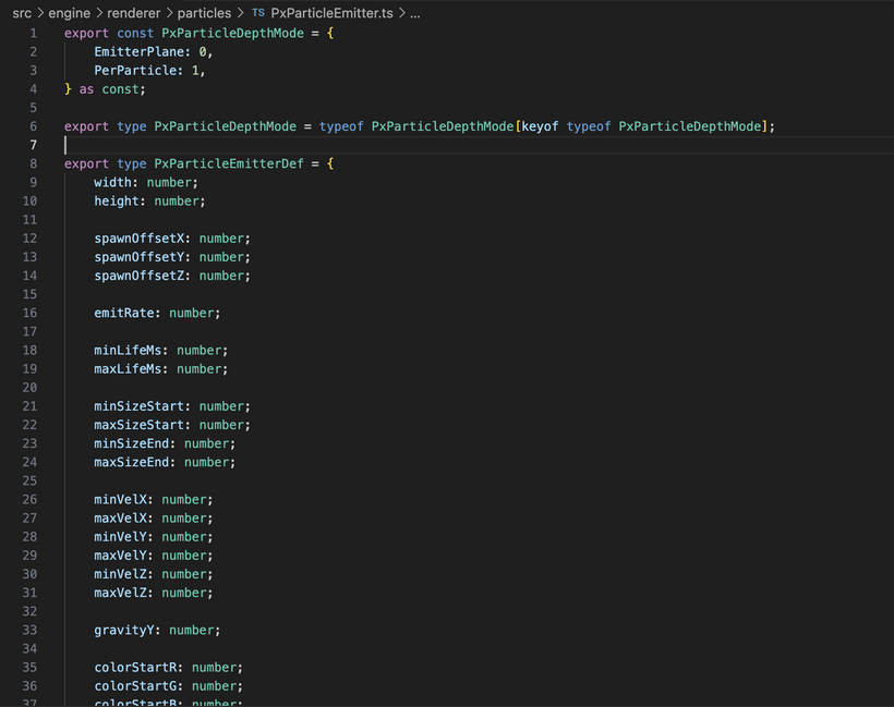 Under the hood the system is built around big typed arrays instead of lots of tiny objects. Particle data is stored in flat buffers and dead particles are removed by swapping with the last live one, which keeps updates tight and avoids extra garbage. Emitters work the same way, with reusable slots and capacity growth when needed. On the rendering side, particles are pushed into a batch with position, size, and color data, then drawn efficiently in one go. The result is a system that is flexible enough to support very different kinds of effects, but still structured around keeping the hot path fast and simple.