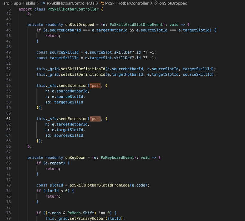 Dragging skills between slots is now connected to the server side slot change messages too. So this is not just a local visual test anymore. When you drag one slot onto another, the client can update its local view and send the corresponding slot changes back to the server so everything stays in sync.