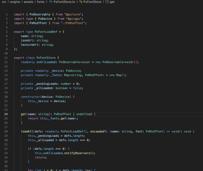 We now have multiple MSDF fonts in play, and the old setup had font loading living directly inside the engine. It worked, but it was starting to feel out of place. So that has been pulled into a dedicated font store. Fonts are now just startup resources that get loaded once and then accessed cleanly wherever they are needed. It is a much better fit for how the rest of the engine is starting to be structured.