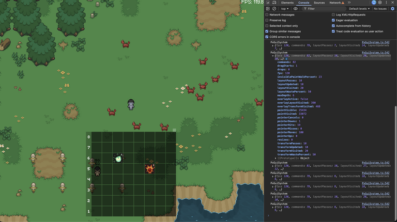 Why is mobile Safari now throttling to as low as 50fps when all 8 hotbars are displayed? It's time to do some debugging and figure out what optimizations we need to implement!
