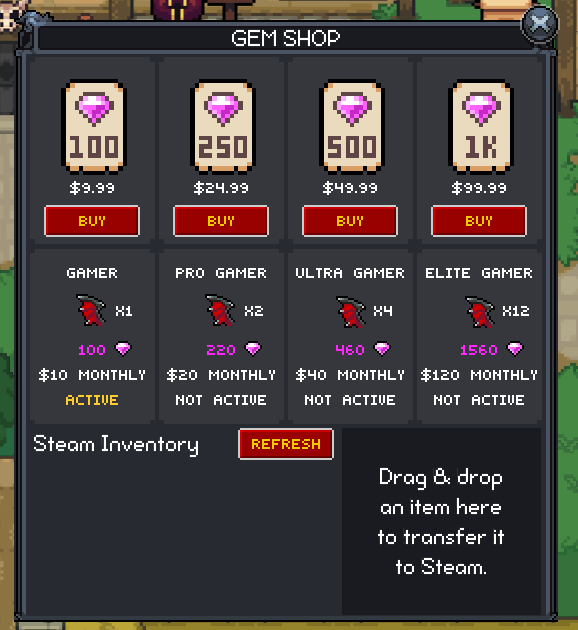 Are you a Steam player and want to get your hands on these monthly exclusives? Well now you can! Navigate to the Gem Shop in game, select the tier you'd like to subscribe at, authorize your purchase and boom! The item(s) and gems will appear in your in game Mailbox shortly after!